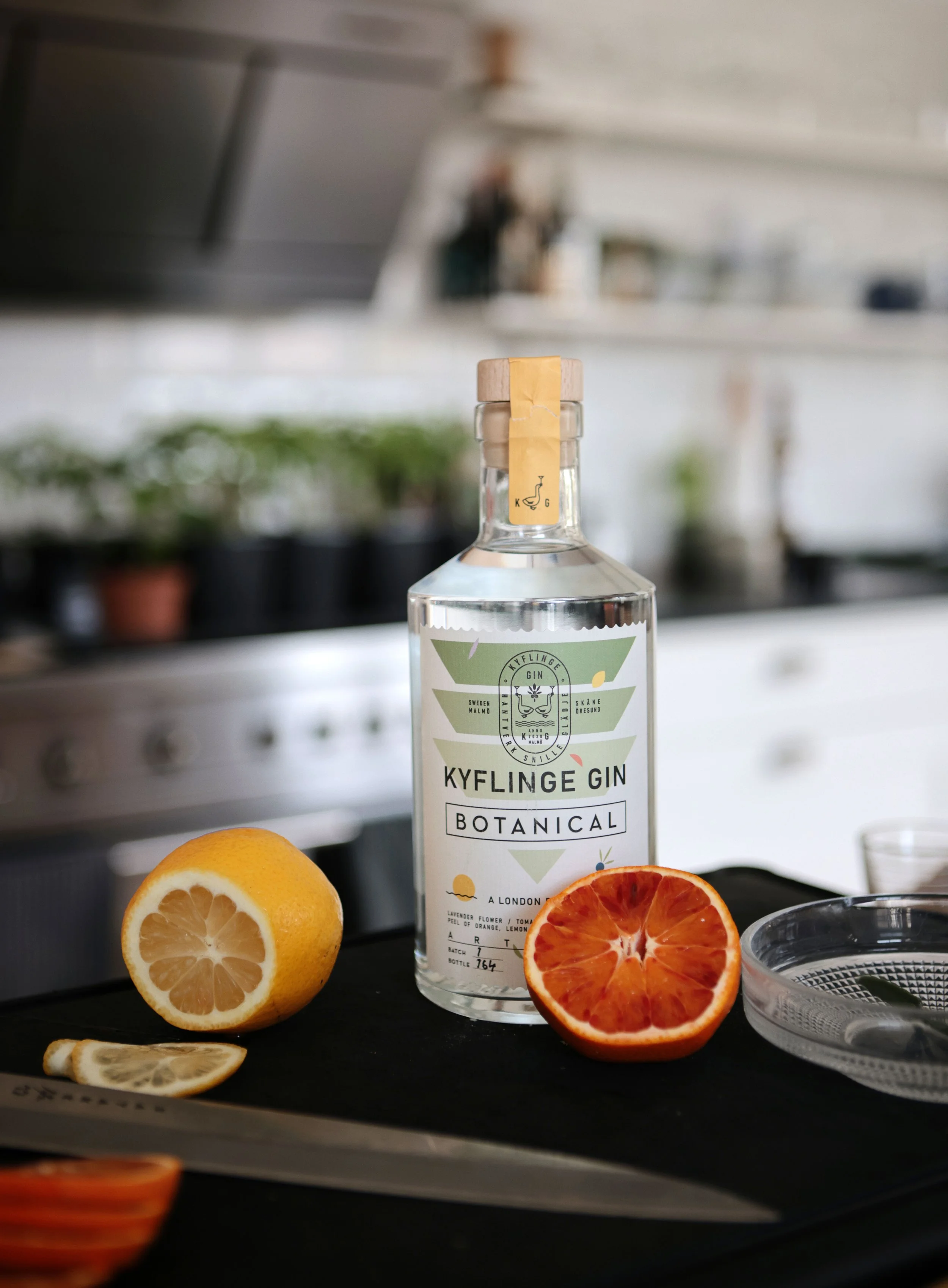 Kyflinge Dry Gin is a classic London Dry Gin but with a twist. Along essential gin ingredients, we boost the spirit with peel of orange, lemon & kaffir lime, nutmeg, black pepper, chamomile, lavender flowers and local tomato branches.